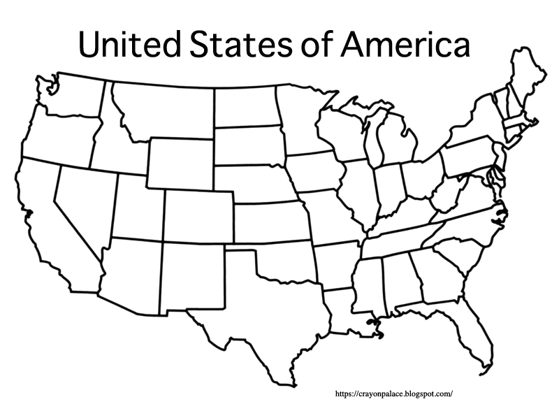 Description of Coloring Page: basic U.S. map of States excluding Hawaii and Alaska, map for coloring, boundaries between states for kids to color